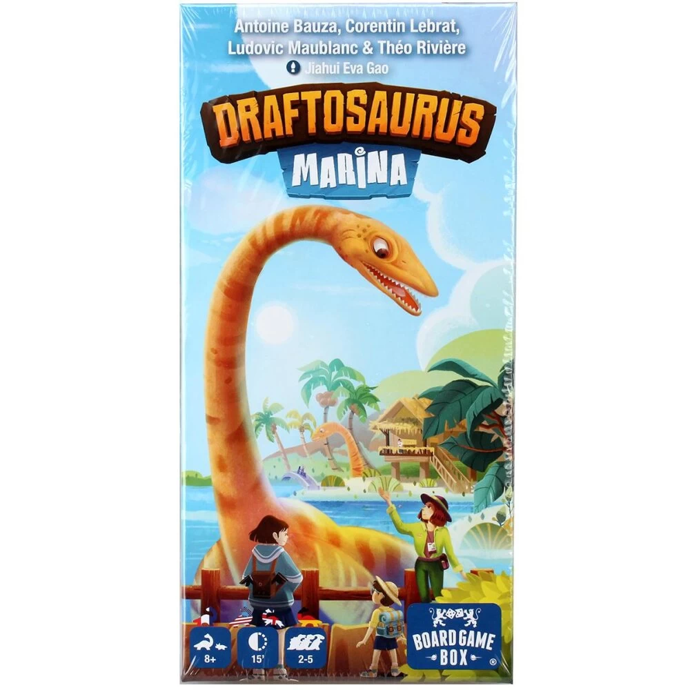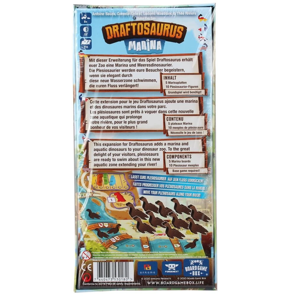 Mit dieser Erweiterung für das Spiel Draftosaurus erhält Euer Zoo eine Marina und Meeresdinosaurier.
