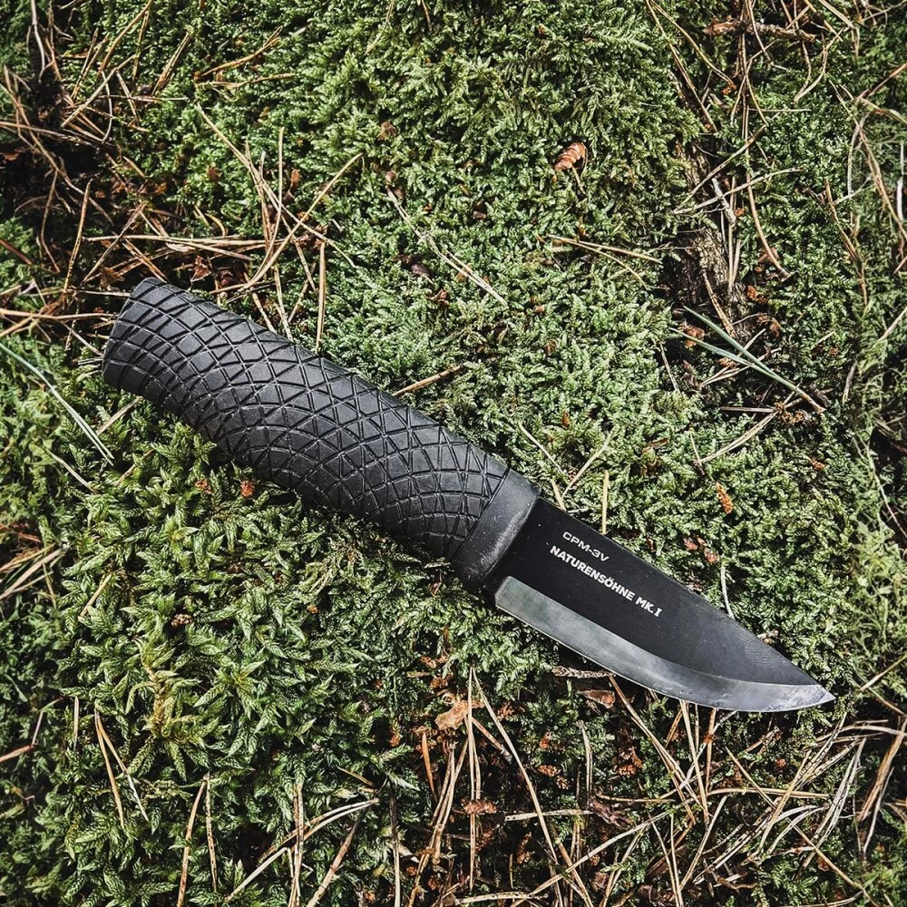 Für die Naturensöhne war, als Liebhaber eines True-Scandi, die Wahl des Klingenschliffs alternativlos. Die Vorteile lagen hierbei auf der Hand, da der enorm scharfe Anschliff keine Sekundärphase benötigt. Gerade beim Batoning beweist der Scandi-Schliff sehr gute Spalteigenschaften und eine hohe Stabilität, da die gesamte Klingenstärke über etwa 2/3 der Klingenhöhe beibehalten wird. Das daraus resultierende höhere Gewicht der Klinge bietet zudem mehr Masse beim Hacken. Als Griffmaterial kommt thermoplastischer Kunststoff zum Einsatz, welcher unverwüstlich ist und neben einer perfekten Handlage sowohl im trockenen wie auch im nassen Zustand eine gewünschte Arbeitssicherheit bietet. Abgerundet wird die hochwertige Ausstattung durch eine Kydex-Scheide, die dank des mitgelieferten Ulticlips sicherstellt, dass das wichtigste Werkzeug am Mann im dichten Walddickicht nicht verloren geht.