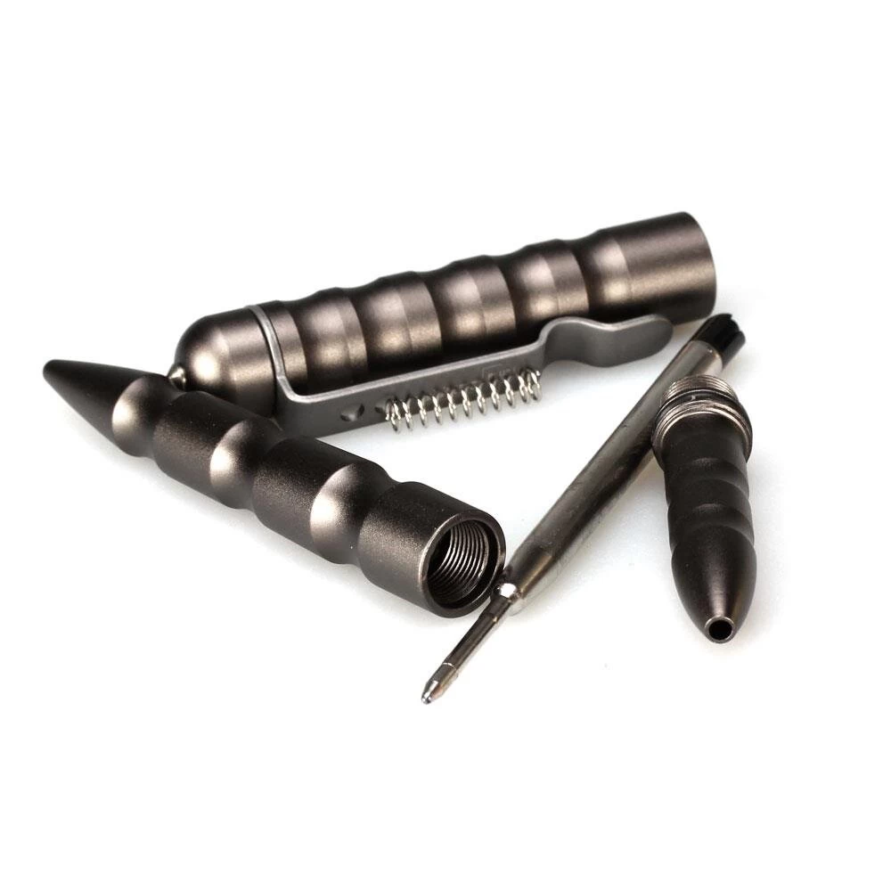 Mit diesem vielseitig einsetzbaren Stift sind Sie für sämtliche Lebenslagen gerüstet. Er dient natürlich primär als hochwertiges Schreibgerät. Darüber hinaus kann der MPP jedoch auch noch als Stylo für ein Palm oder Touchpad-Handy genutzt werden. Im Falle eines Unfalles, bei blockierten Türen, können Sie den in den MPP integrierten Glasbrecher nutzen, um sich oder verletzte Personen aus dem PKW zu retten. Ein weiterer Nutzen dieses vielseitigen Produktes ist als Kubotan in einer Selbstverteidigungs-Situation. Durch den stabilen Clip bleibt der MPP stets griffbereit. Die geschraubte Kappe verhindert ein ungewolltes Trennen von Kappe und Stift. Der mit breiten Rillen versehene Griffkörper ist aus leichtgewichtigem Aluminium und liegt sehr angenehm in der Hand.