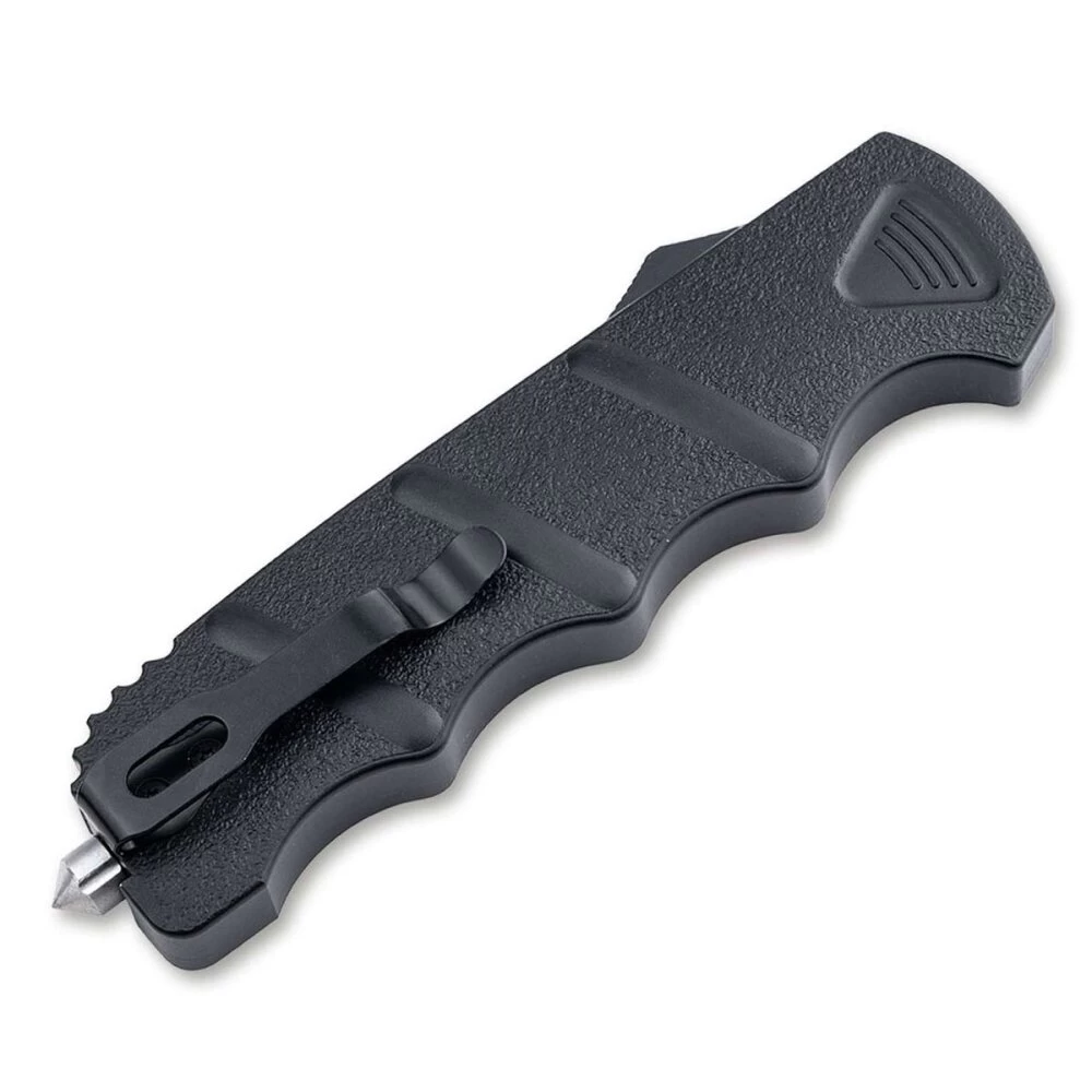 Herzstück des Rettungswerkzeugs ist ein klassischer Springmechanismus mit Daumenschieber, der die Klinge bei Betätigung kraftvoll hervorschnellen oder aber vollständig in den Griff zurückgleiten lässt. Der absolut zuverlässig arbeitende und bewährte Mechanismus mit kräftiger Feder wurde von den OTFs der Springmesserserie Kalashnikov übernommen, die Böker seit vielen Jahren im Ausland wie z.B. in Frankreich oder in den USA vertreibt.
