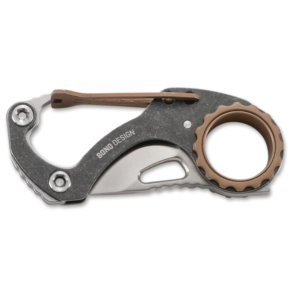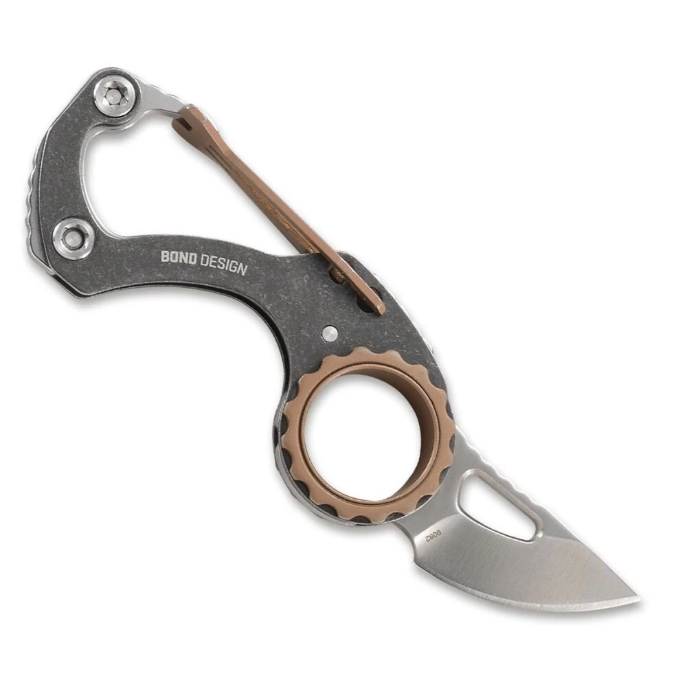 Mit dem CRKT Compano ist Designer Mike Bond ein außergewöhnlicher Wurf gelungen. Das Slipjoint-Messer mit 5Cr15MoV Klinge fällt insbesondere durch seinen Edelstahlgriff im Black Stonewash-Finish auf, der gleichzeitig als Karabiner genutzt werden kann. Farbliche Akzente setzen das in Bronze gehaltenen Klingendrehgelenk und der Schnapper.