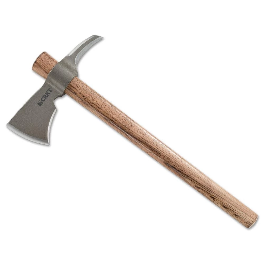 Mit der neuen Axt von RMJ Forge beschreitet CRKT neue Wege. Das Konzept weicht von den modernen, taktischen Einsatzwerkzeugen ab und führt zurück zu den traditionellen Werkzeugen für Wald, Garten oder Landwirtschaft. Der Axtkopf wird aus 1055er Kohlenstoffstahl (nicht rostfrei) gefertigt und auf 55 Grad Rockwell gehärtet. Der Schaft besteht aus hochwertigem Tennessee Hickory. Ein perfekt konzipiertes Tomahawk. Der Axtkopf besitzt eine gehämmerte Oberfläche und einen spitz zulaufenden Dorn.