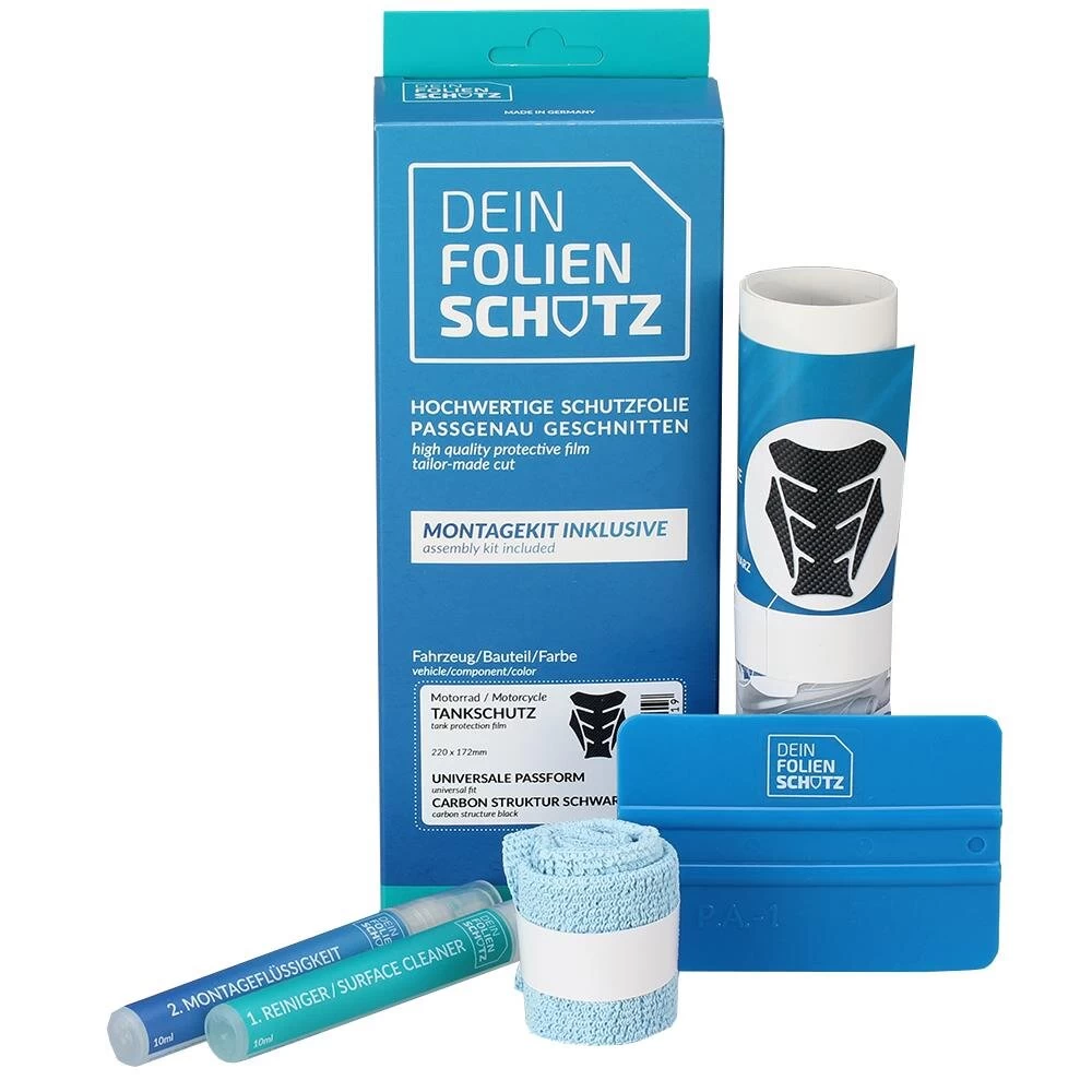 In dieser Ausführung bekommst du eine universell einsetzbare Tankschutzfolie in Carbon/Schwarz zu dir nach Hause. Die Oraguardfolie wurde hierbei speziell für den Karosseriebau entwickelt und ist witterungsbeständig, UV-beständig sowie wasserabweisend. Jedes Set enthält alles was du zum Aufbringen der Schutzfolie benötigst, sodass du direkt mit dem Upgrade deines zweirädrigen Herzstückes beginnen kannst.