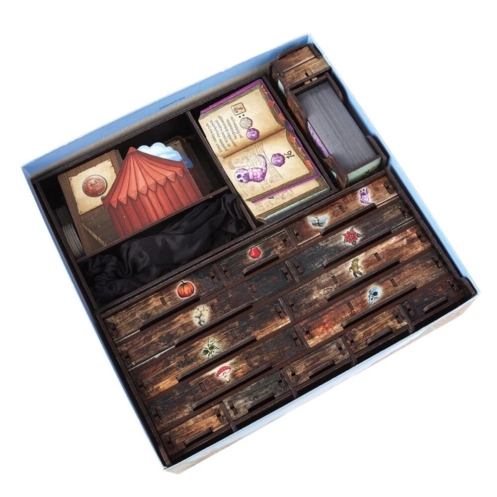 Das e-Raptor Insert für Dein Quacksalber von Quedlinburg sowie den Erweiterungen Die Kräuterhexen und Die Alchemisten geeignet und ist das perfekte Zubehör für alle, die auf Ordnung und Übersicht in der Spielekiste stehen. Keine Zip-Tüten mehr und endlich perfekte Übersicht über das Spielmaterial!