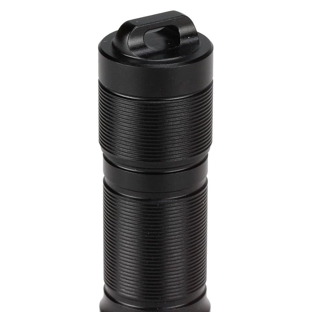 Mit der mitgelieferten AAA-Einzelbatterie wird eine Leistung von bis zu 100 Lumen erzielt. Die Leuchte ist langlebig, mit einem Ganzkörper-CNC-Bearbeitungslichtkörper, einem hart eloxierten Premium-HAIII-Finish vom Typ HAIII und zudem noch bis zwei Meter wasserfest. Die kompakten Abmaße, der praktische Drehschalter und die drei Leuchtstufen machen die E01 zum perfekten Begleiter.