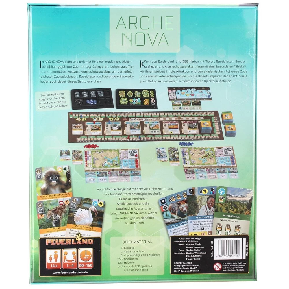 Autor Mathias Wigge hat mit sehr viel Liebe zum Thema ein interessant verzahntes Spiel erschaffen. Durch seinen hohen Wiederspielreiz und die detailreiche Ausstattung bringt Arche Nova immer wieder ein großartiges Spielerlebnis auf den Tisch.