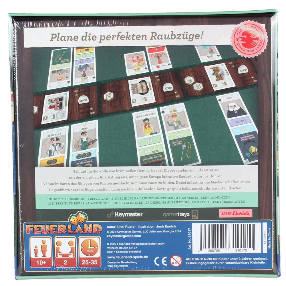 Schlüpft in die Rolle von kriminellen Genies, heuert Diebesbanden an und stattet sie mit der richtigen Ausrüstung aus, um in ganz Europa lukrative Raubzüge durchzuführen. Je besser die Ausrüstung zu den Fähigkeiten der Diebe passt, desto mehr Punkte am Spielende sind möglich.