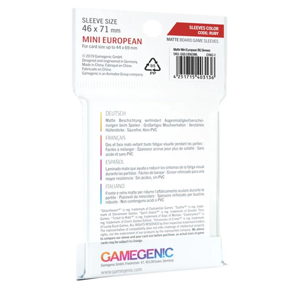 - 1 Pack mit 50 Matte Mini European Sized Sleeves – Size 46 x 71mm