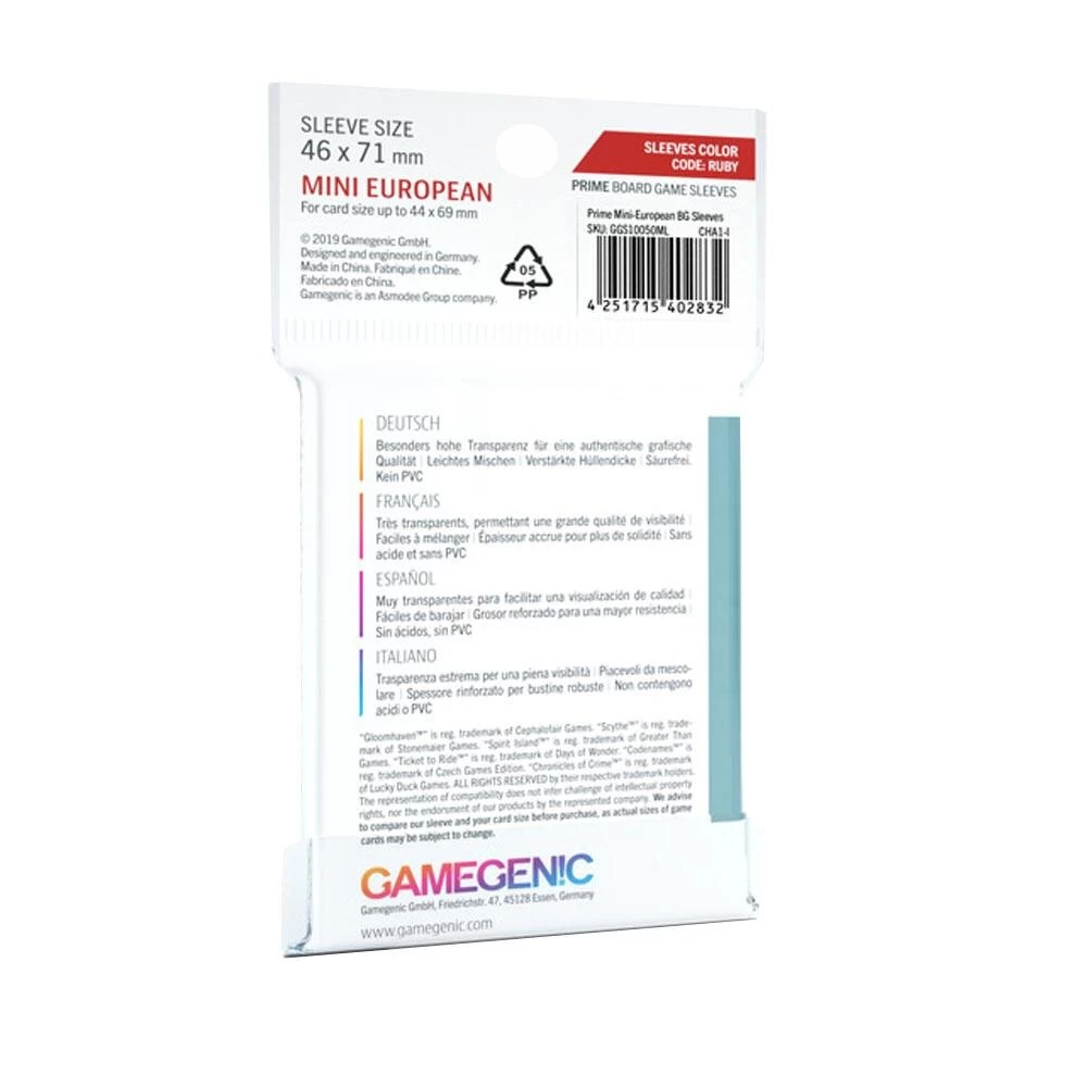 - 1 Pack mit 50 Prime Mini European Sized Sleeves – Size 46 x 71mm