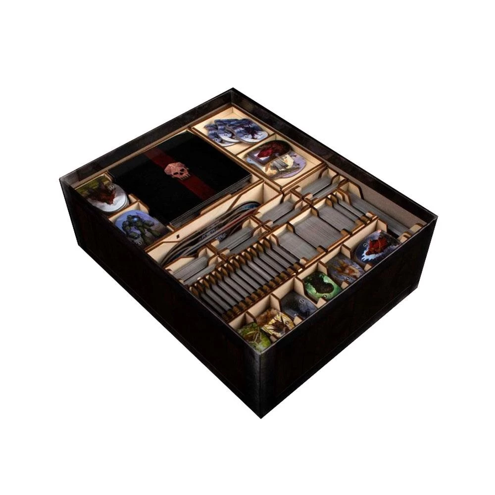 Das meisterhafte Gloomhaven: Pranken des Löwen bietet einiges an Material, was ordentlich verstaut werden will. Besitzt Ihr zudem noch die Erweiterung wird es schnell eng. Mit dem LaserOx Einsatz erhaltet Ihr nicht nur einen passenden sondern auch einen wahnsinnig praktischen und einzigartig gestalteten Einsatz! Alle Spielsteine, Karten und Marker finden darin wunderbar Platz. Zudem sind diese herausnehmbar und können einfach und bequem mit auf dem Spieltisch aufgestellt werden.