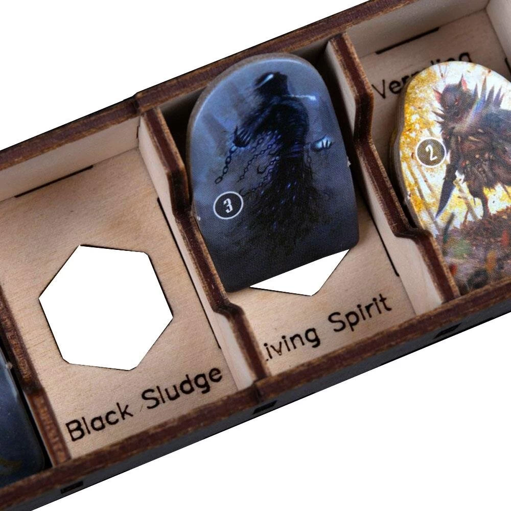 - zwei Einsätze mit Acryldeckel für Fallen und kleine Token