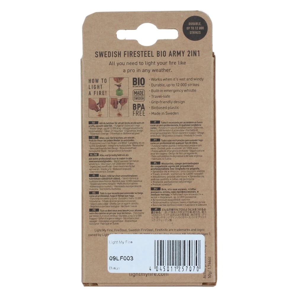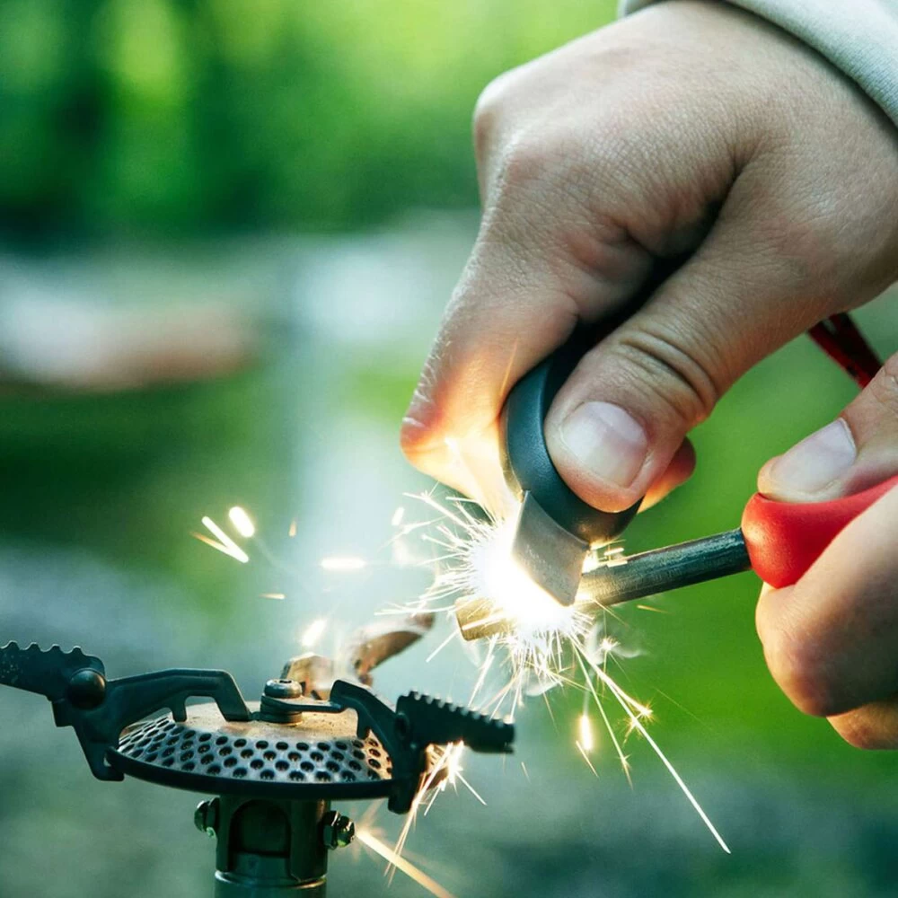 Unabhängig von Witterung und Höhe entzündet der Feuerstarter zuverlässig Lagerfeuer, Grills oder Campingkocher. Dank des hohen Magnesiumanteils im Feuerstab werden beim Entlangschaben des Feuerstahls Funken von ca. 3000° C erzeugt, die den Zunder im Handumdrehen entfachen. Als Griffmaterial kommt Bio-Kunststoff zum Einsatz, der auf Basis von pflanzlichen Fasern hergestellt wurde. Die ergonomische Form garantiert eine sichere Handhabung.