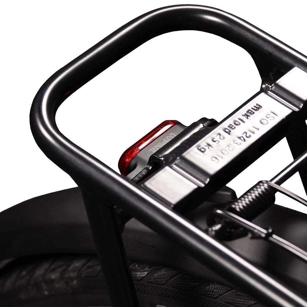 Die mit 45 Lumen außergewöhnlich starke E-Bike Rückleuchte zur Befestigung an Deinem Gepäckträger (Lochabstand: 50mm).