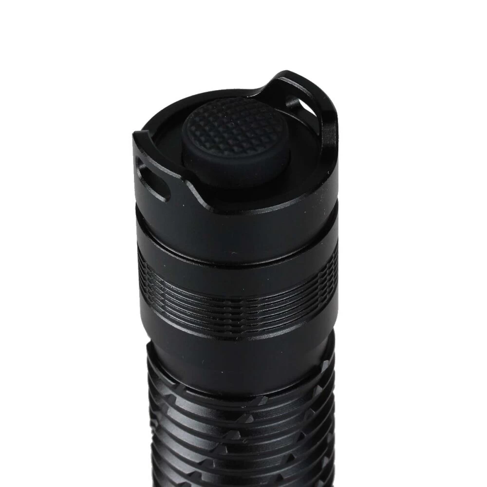 Die Nitecore MH12 Pro wird über den Heckschalter eingeschaltet, das Ändern der Leuchtstufen erfolgt über den Mode-Schalter am Lampenkopf. Auf der rechten Seite des Modeschalters zeigen 4 grüne LED´s die Ladezustand des Akkus an, 4 blaue LED´s auf der linken Seite des Modeschalters die eingeschaltete Leuchtstufe. Ihnen stehen zwei Modi zur Verfügung, der Daily Mode und der Tactical Mode. Die Modi unterscheiden sich in der Anzahl und Anordnung der Leuchtstufen und Sondermodi.