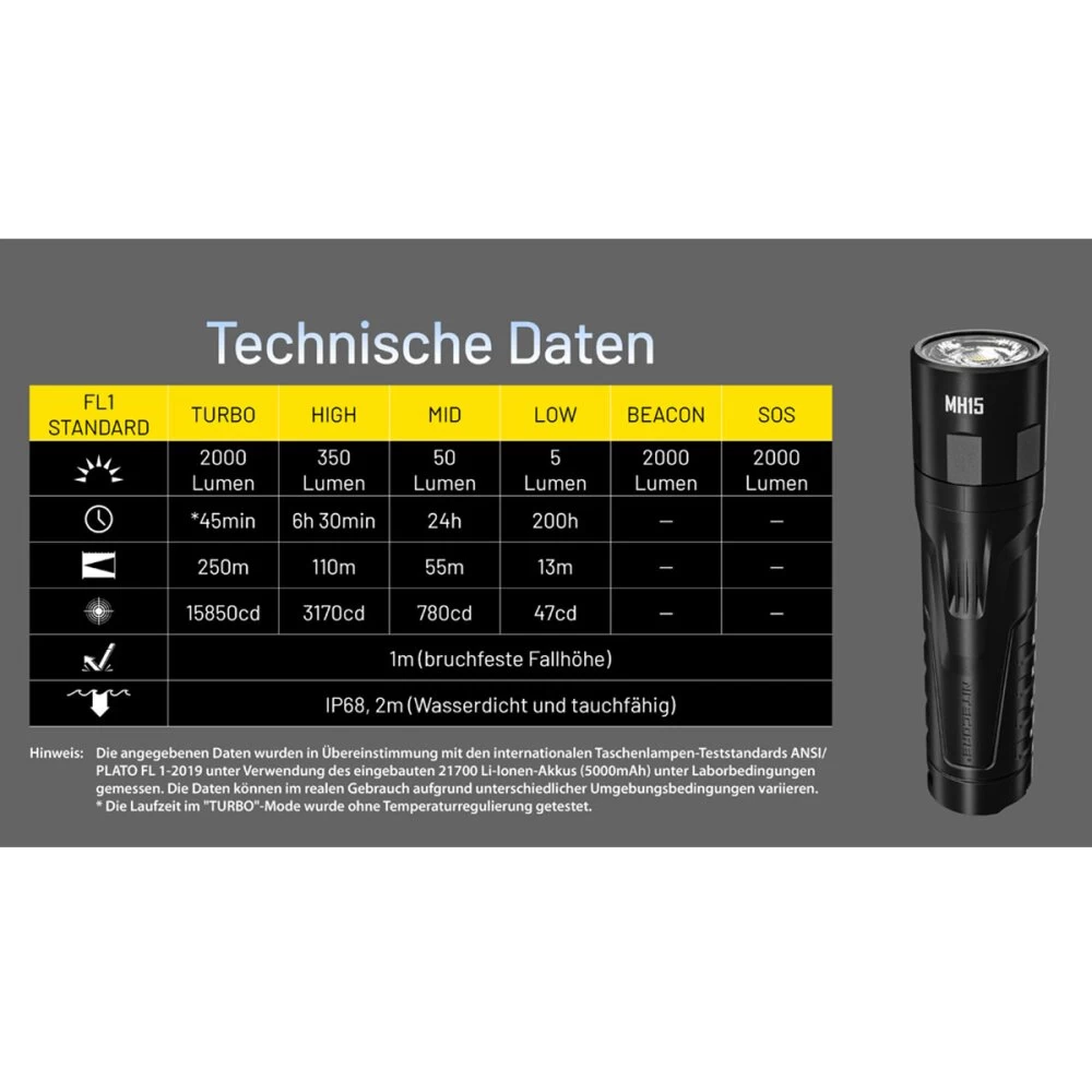 Die Nitecore MH15 ist eine leichte und kompakte LED-Taschenlampe für den täglichen Einsatz.