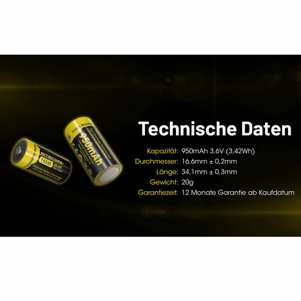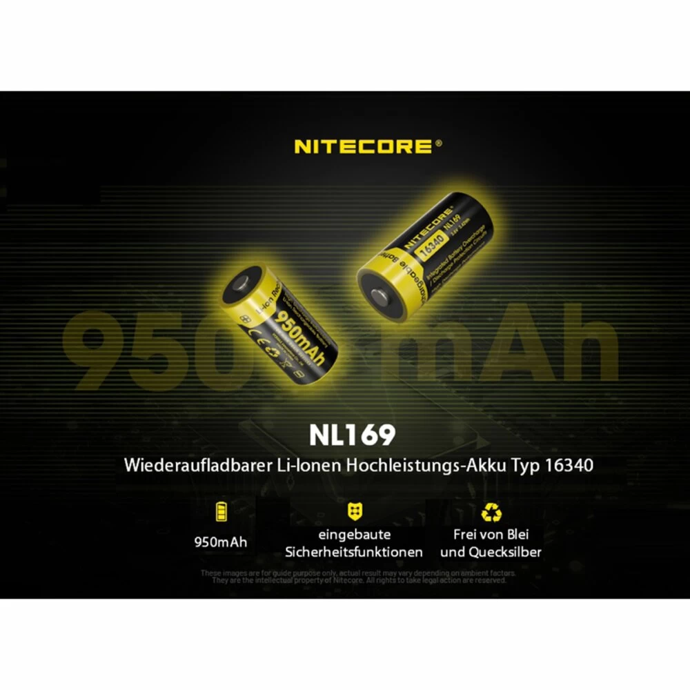 - Nitecore NL169 – 16340 Li-Ion Akku 950mAh mit 2A