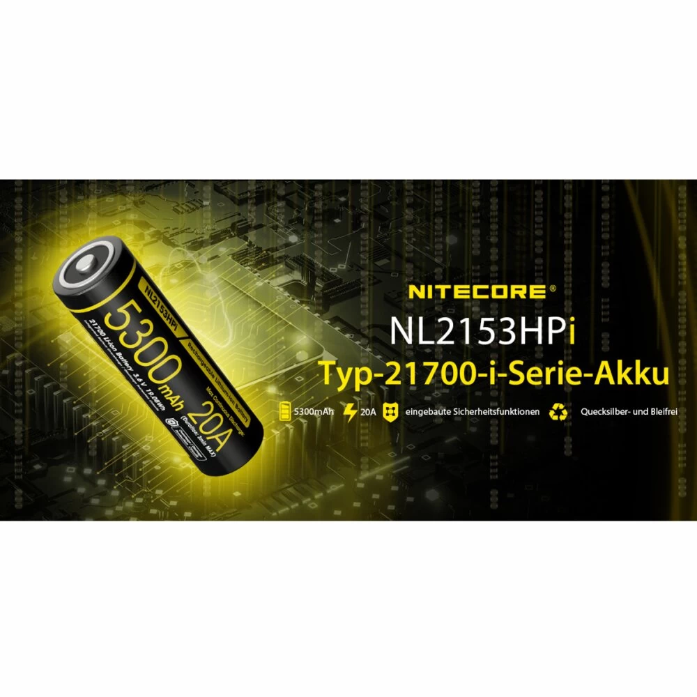 - Nitecore NL2153HPi 21700 – Li-Ion Akku mit 5300mAH