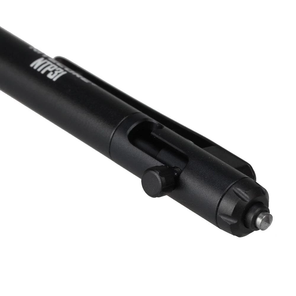 Das besondere am NTP31 ist der herausfahrbare Glasbrecher mit Wolframspitze. Der Verriegelungsmechanismus fährt in die eine Richtung die Mine aus, in die andere Richtung den Glasbrecher.