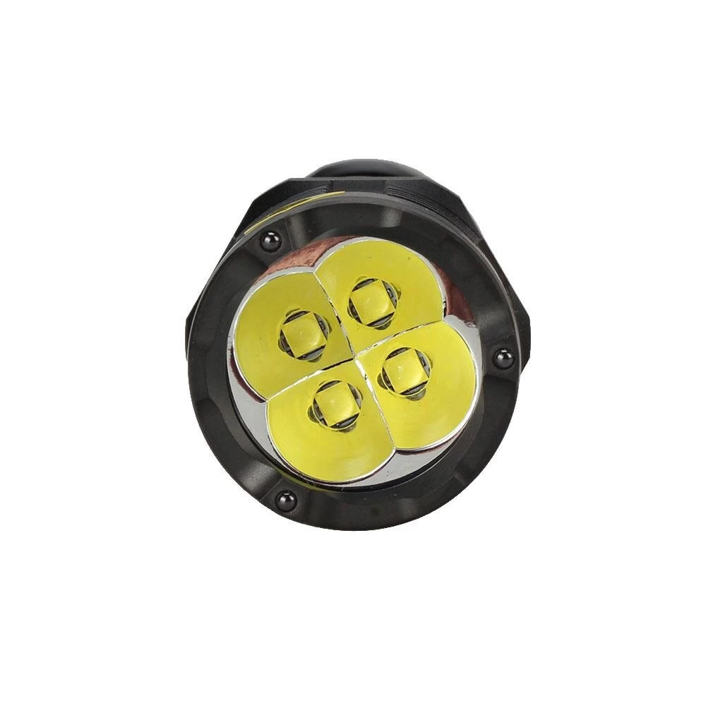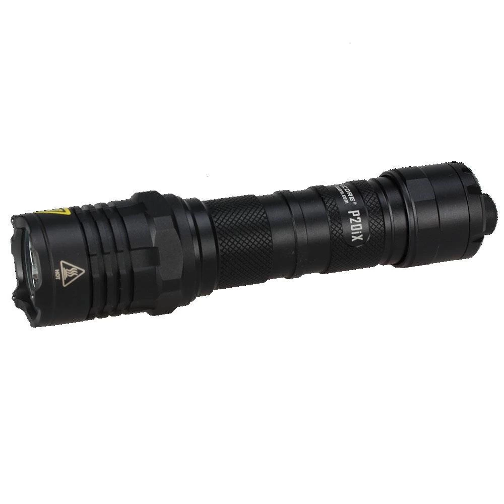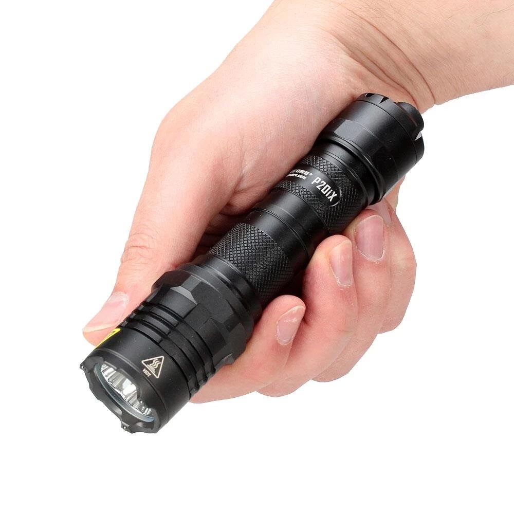 Die schwarze P20iX Leuchte der Firma Nitecore ist eine weiteres Modell die Precise-Serie, welche für den taktischen Einsatz besonders robust, kompakt und leuchtstark konzipiert wurde. Als Energiequelle dient ein NL2150HPi Lithium-Ionen-Akku mit 5000mAh Kapazität, welcher für eine lange Brenndauer sorgt. Dank 4 verbauter CREE XP-L2 V6 LEDs werden 4000 Lumen erzeugt die mit einer Reichweite von 221 Metern glänzen, wobei der eingebaute Strobe-Ready-Button schnelles Umschalten zwischen den Leuchtstufen und dem Strobomodus ermöglicht. Zudem bietet der mitgelieferte Batteriekäfig auch die Verwendung von 2x CR123A Lithium-Batterien, was den ununterbrochenen Einsatz positiv beeinflusst.