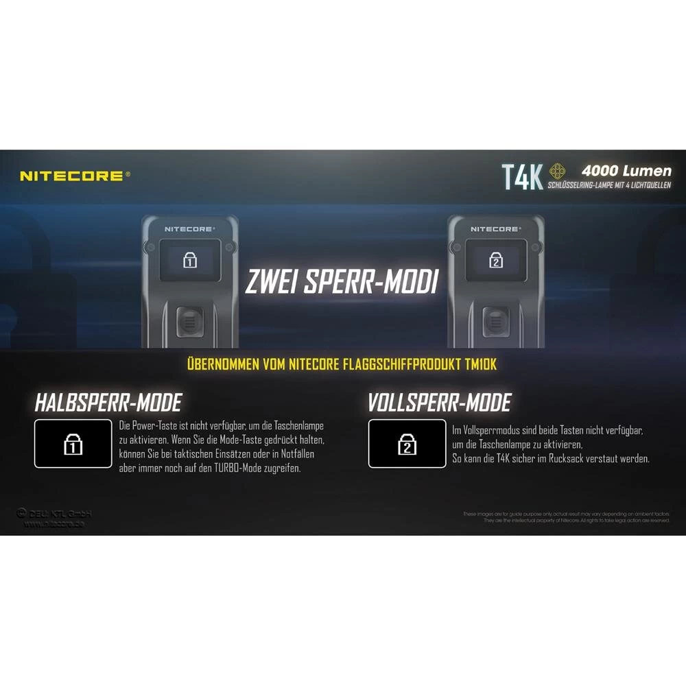 Die Nitecore T4K gehört zur T-Serie von Nitecore und ist ein sehr kompakte und äußerst leistungsstarke Schlüsselbundlampe.