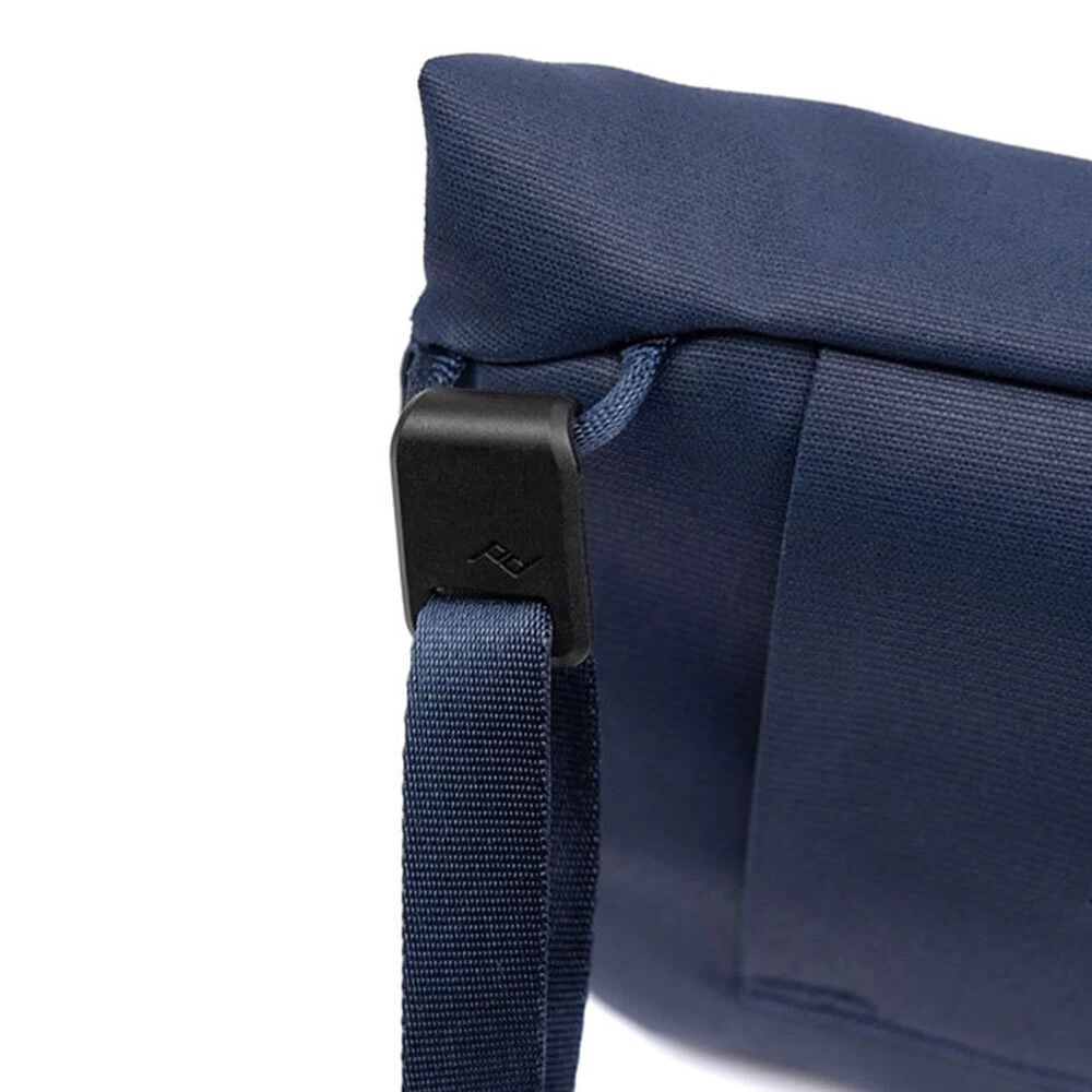 Auf der Rückseite der Field Pouch V2 befinden sich die Ösen für den mitgelieferten Tragegurt. Anstatt des Gurts kannst du selbstverständlich auch Ankerschlaufen verwenden (nicht im Lieferumfang enthalten), um die Tasche mit allen Peak-Design-Kameragurten zu kombinieren.