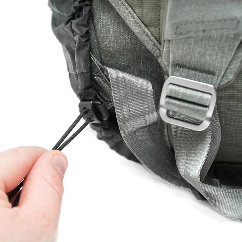 Die Rain Fly ist keine 0815-Regenschützhülle von der Stange. Auch bei diesem eigentlich simplen Zubehör beweist Peak Design perfekt durchdachtes Produktdesign, denn die Schutzhülle wartet mit einigen Features auf. Und natürlich erfüllt die Schutzhülle auch ihre Kernkompetenz, denn sie schützt den Rucksack vor Regen, was recht eindeutig die Bezeichnung Regenschutzhülle erklärt. Sie ist aber auch ähnlich effizient, wenn es um Schnee, Schlamm oder Staub geht.