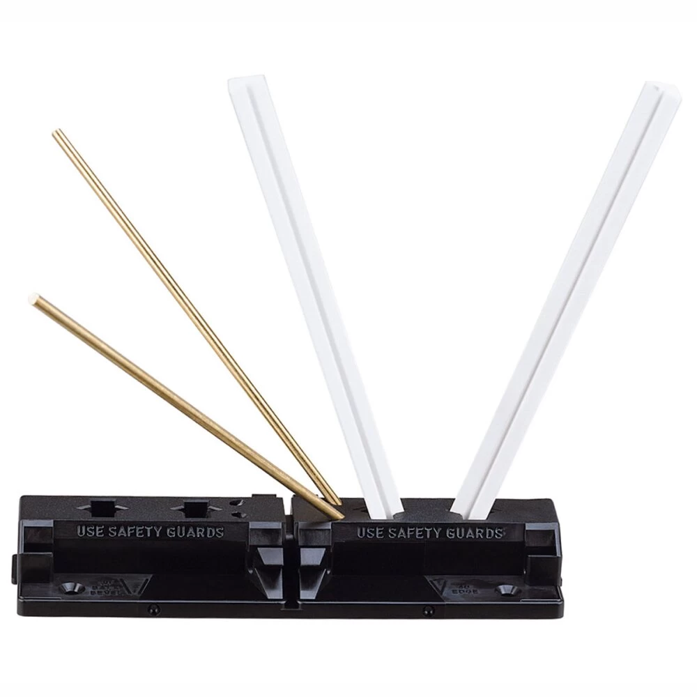 Der Spyderco Tri-Angle Sharpmaker zeichnet sich durch seine benutzerfreundliche Handhabung aus, die keine Vorkenntnisse erfordert und dennoch professionelle Ergebnisse liefert. Mit dem praktischen Sharpmaker werden insgesamt vier Durchgänge mit jeweils zwanzig Durchzügen pro Klingenseite durchgeführt. Die Klinge wird abwechselnd am oberen Ende des rechten und linken Schleifsteins angesetzt und mit leichtem Druck nach unten gezogen. Vorgegebene Schleifwinkel von 12,5 Grad, 30 Grad und 40 Grad erleichtern die Nutzung zusätzlich. Der Kunststoffständer und der sichere Handschutz garantieren problemloses und materialschonendes Abziehen. Auch Scheren, Äxte, Werkzeuge und Wellenschliffklingen lassen sich problemlos wieder schärfen. Die Lieferung erfolgt mit zwei Dreikant-Keramikstein-Paaren unterschiedlicher Körnung, einer detaillierten Anleitung und einer DVD.