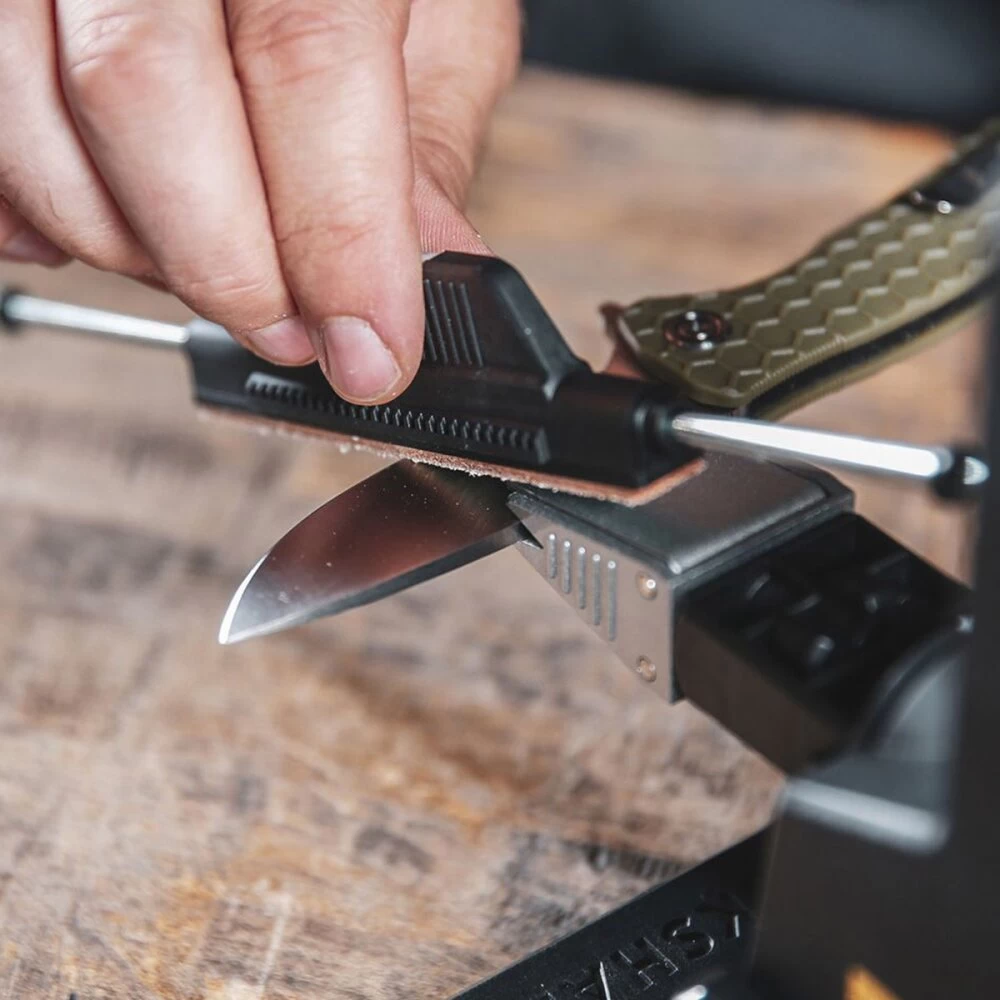 Das Work Sharp Upgrade Kit hebt den Precision Adjust Sharpener auf die nächste Ebene des Messerschärfens. Der Tri-Brasive Schärfstein enthält Diamantplatten der Körnungen 220, 320 und 400 und verleiht einer Standard-Klinge damit die perfekte Schärfe. Der feine Tri-Brasive Schärfstein enthält Diamantplatten mit 600er und 800er Körnung sowie eine feinkörnige Keramik, um das Messer optimal abzuziehen. Der mitgelieferte Schleifstab mit Lederbesatz verfeinert zudem das Schärfbild nochmals, während der darin integrierte Keramikstab ideale Ergebnisse bei Messern mit Wellenschliff verspricht.