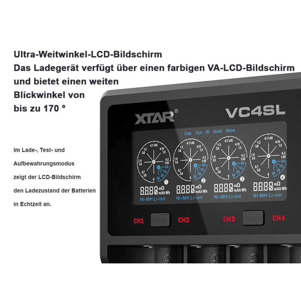 - Xtar VC4S Ladegerät verfügt über vier intelligente, unabhängig voneinander funktionierende Ladeschächte